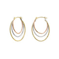 3 Row Tricolor Oval Diamond Cut Hoop Earrings