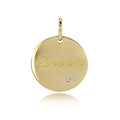 Our 10K gold pendant charm is a perfect combination of subtlety and sparkle. Paired with its matching gold chain, the “dream” disc makes an ideal gift for those who appreciate simple but elegant accessories.