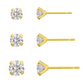 10K Yellow Gold Round Triple Stud CZ Earrings