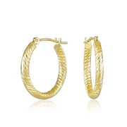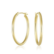 14K Yellow Gold Elongated Oval Hoop Earrings