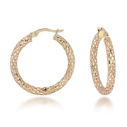 14K Yellow Gold Mesh Texture Hoop Earrings