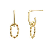 14K Yellow Gold Modern Drop Twist Hoop Earrings