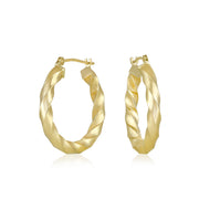 14K Yellow Gold Twist Skinny Croissant Hoop Earrings