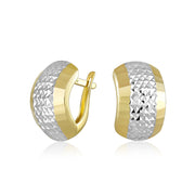 14K Yellow White Gold Hoop Hammered Petite Earrings