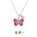 Sterling Silver Plated Brass Pink Butterfly Pendant Necklace with Matching Pink Studs set