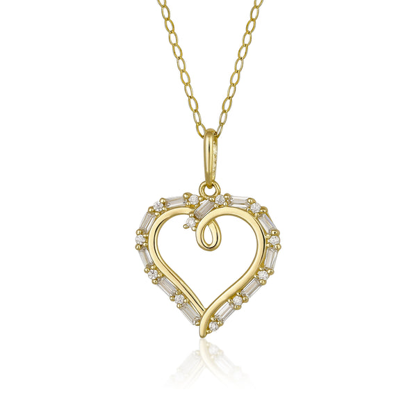The classic heart pendant with a little bit of a twist to keep it interesting. CZ stones surround the heart silhouette. Rich gold metal just enhances the meaning of love that this heart exudes.
