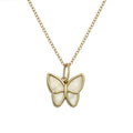 Gold Butterfly charm necklace pendant in Mother of Pearl that is luxurious and whimsical all in one