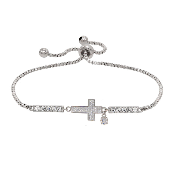Adjustable Cross with white crystal bracelet is the perfect wrist accessory you need. Layer with all of your other bracelets for a fun arm stack