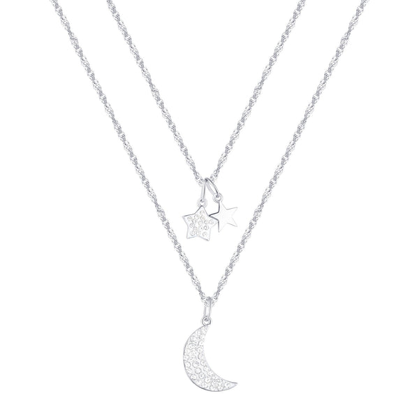 Sterling Silver Plated Brass Moon and Stars Celestial Pendant Necklace