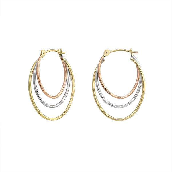 3 Row Tricolor Oval Diamond Cut Hoop Earrings
