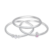 Sterling Silver Minimal CZ and Opal Three Ring Set