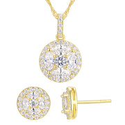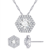 Sterling Silver with CZ Stone Cushion Cut Pendant and Earring Set