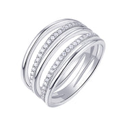 Layered Fan CZ Stones Gold Plated Hoop Earrings