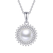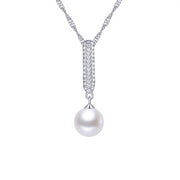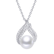 Sterling Silver Classic Pearl and CZ Pendant Necklace