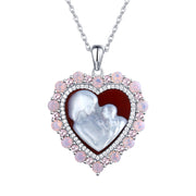 Pink Agate Cherub Angel Sterling Silver Heart Pendant