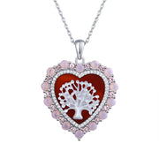 Pink Agate Tree of Life Sterling Silver Heart Pendant