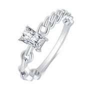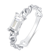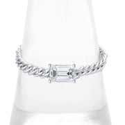 Sterling Silver Emerald Cut Brilliant CZ Chain Ring