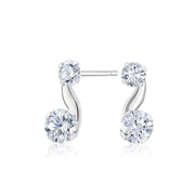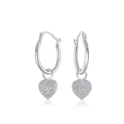 14K White Gold Charming Hearts CZ Hoop Earrings