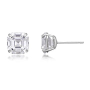 10K White Gold 6mm Asscher Cut CZ Stud Earrings