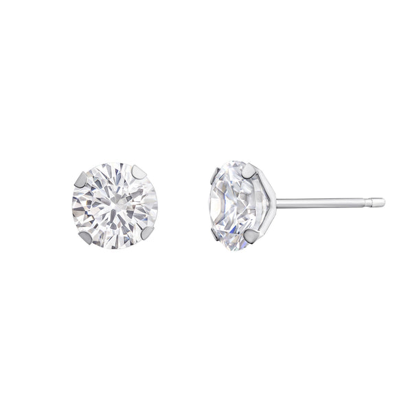 10K White Gold Round 6mm Modern CZ Stud Earrings