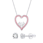 Sterling Silver Plated Brass Solitaire Heart with Matching Round Studs set