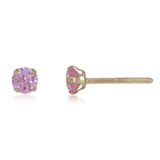 10K Yellow Gold Minimal 3mm Pink CZ Stud Earrings