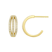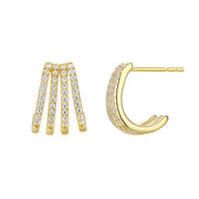Layered Fan CZ Stones Gold Plated Hoop Earrings