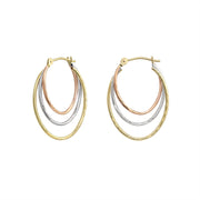 3 Row Tricolor Oval Diamond Cut Hoop Earrings