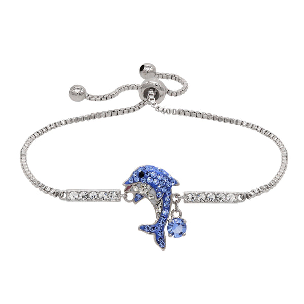 Sterling Silver Plated Brass Blue Dolphin Adjustable Bracelet