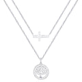 Faux layered necklace with a sideway cross and a Tree of Life pendant. This is the perfect gift for that special person in your life
