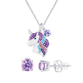 Sterling Silver Plated Brass Unicorn Pendant with Matching Studs set
