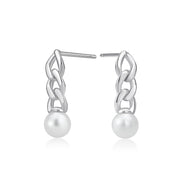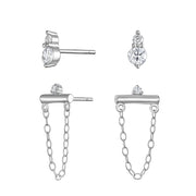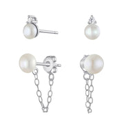 Sterling Silver Classic Fun Modern Pearl CZ and Chain Dangle Earring Set