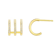 Sterling Silver Modern Pearl Bar Stud and Half Hoop Earring Set