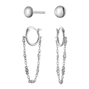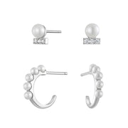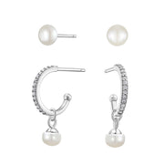 Sterling Silver Pearl Stud and Hoop Drop Earring Set