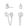 Pearl studs with a touch of CZ sparkle paired with a modern pearl stud that has a chain element making this pearl earring set charming and fun.