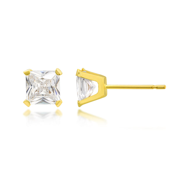 10K Yellow Gold 6mm Square CZ Stud Earrings