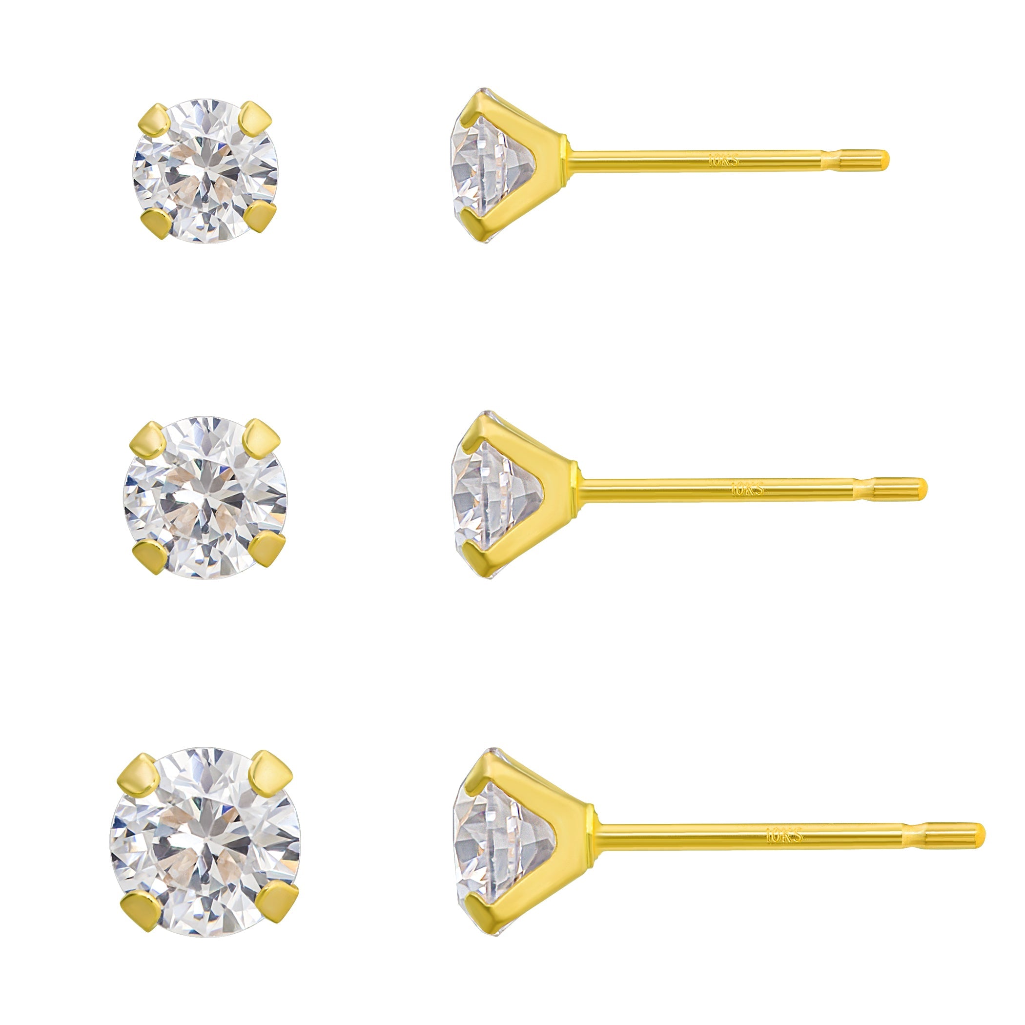 10K Yellow Gold Round Triple Stud CZ Earrings