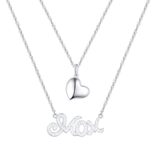 Sterling Silver Plated Brass Mom Heart Pendant Necklace