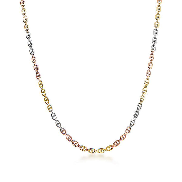 10K Tri Color Gold Mariner Link Chain Necklace 20"