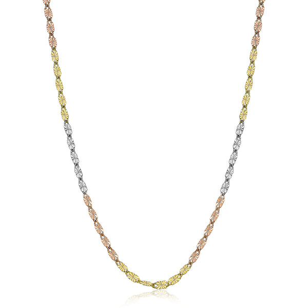 Diamond Cut Link Gold Chain Necklace crafted in rich gold metals. You can wear this chain with any color gold as this is made from Yellow, White, and Rose gold. Made in Italy.