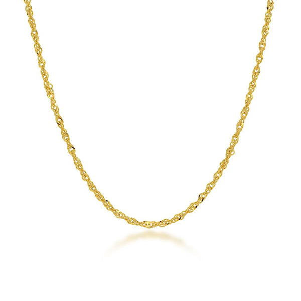 Crafted with exceptional skill and quality, this 16-inch gold Singapore chain is an ideal accessory. Pair the lightweight necklace with a favorite pendant or charm, or wear it alone as a simple but elegant statement. Either way, its shine will catch everyone’s eyes.